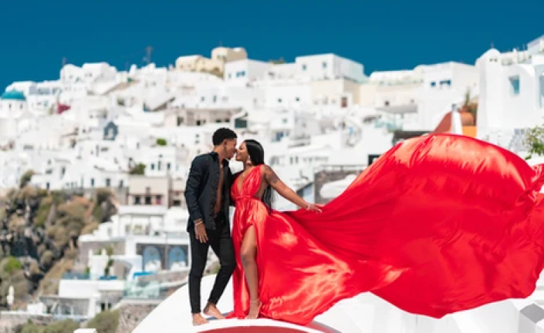 We’ve created a guide with locations of the best sunset in Santorini – perfect spots for your flying dress photoshoot in Greece.