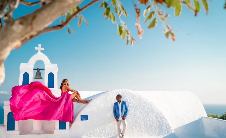 Santorini flying dresses are one of the comfiest options of clothing for a Santorini maternity shoot. Any transformer flying dress from SantoriniDress will be perfect, you may choose a maternity photoshoot dress by this link.